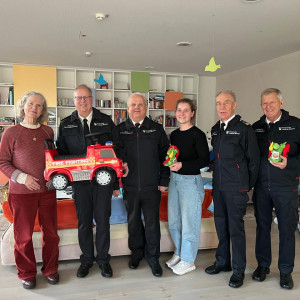Übergabe Feuerwehrauto und Maskottchen „Grisu“ an das Kinderpalliativzentrum München